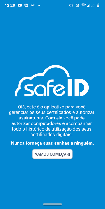 SafeID está disponível para Android 9.0 e superior. A versão atual do aplicativo é 2.10, e você pode executá-lo em inglês e português.